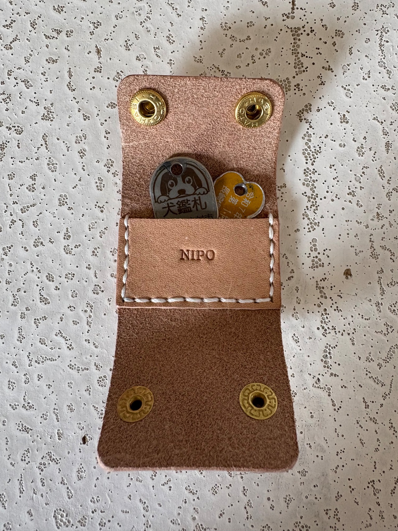 首輪に付けられる迷子札(革製ポケット)です。